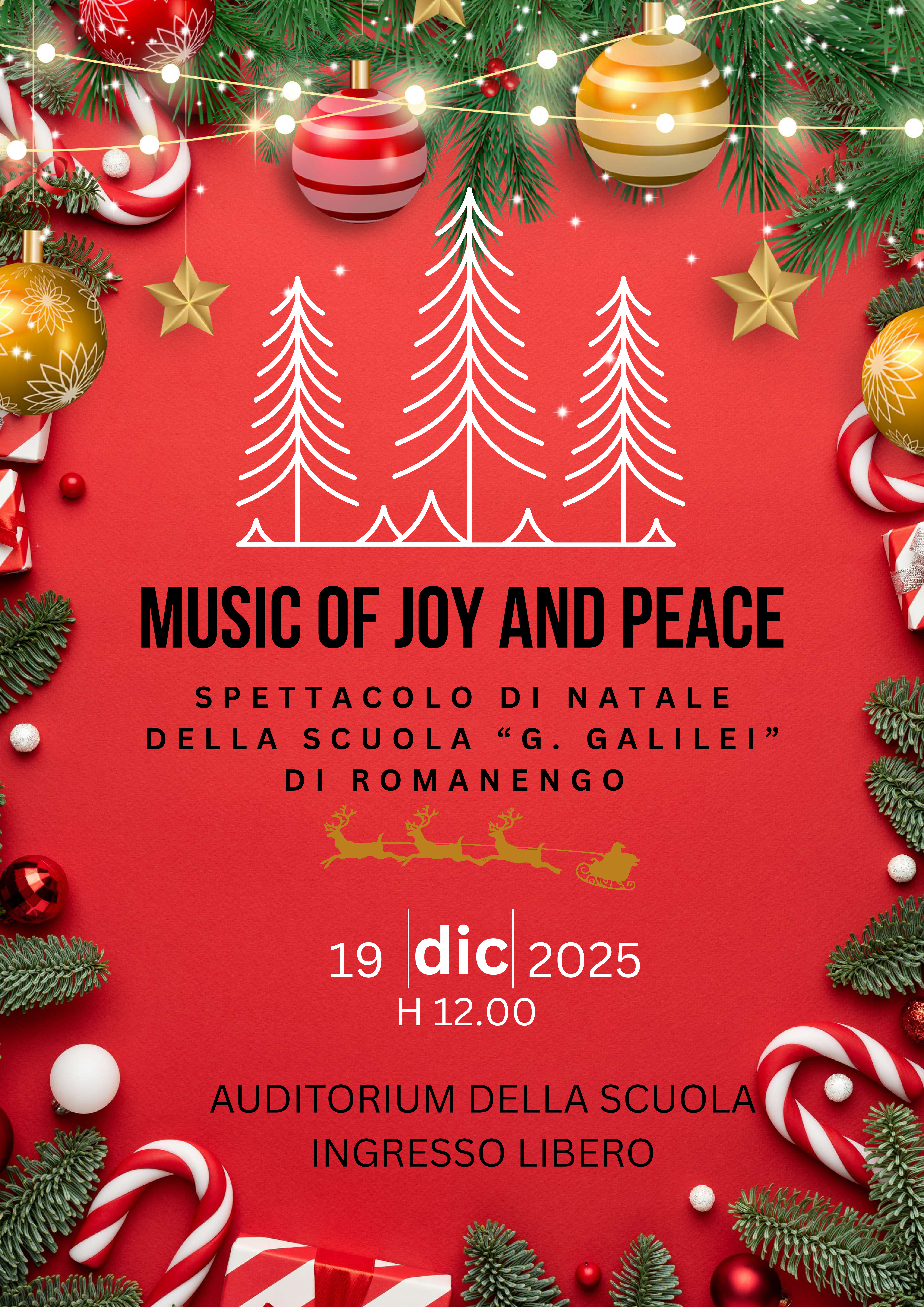 L'esibizione di Natale si terrà presso l'auditorium del plesso scolastico venerdì 19 dicembre alle ore 12.00 con ingresso libero.